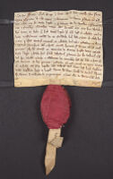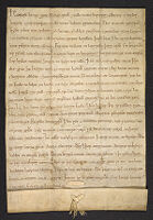 - Notarial copy of an arbitration between Elizabeth of Katzenelenbogen, abbess of St Mary’s in the Capitol in Cologne, and Herman of Hachinberch, canon of the same church; dated 30 January 1352, at vespers, with the notary mark and notarial certificate of Rurgerus de Hillsheynr, imperial notary of...