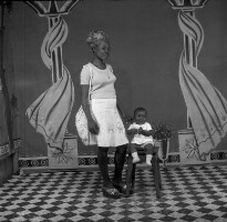 85. EAP054/1/153/187 Reference (shelfmark): EAP054/1/153/187 Title: Recreational photograph [c 1976] Scope & Content: Woman standing by a baby sitting Format of original: 58mm x 59mm plastic negative Collection Area: Endangered Archives Programme Languages: Not applicable Date Range: c 1976 Extent: 1 TIFF image