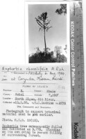 1667. EAP923/1/1/1/594 Reference (shelfmark): EAP923/1/1/1/594 Title: Euphorbia obovalifolia; in Mbale.North Elgon.Sit River.Uganda. Scope & Content: Genus: Euphorbia, Taxonomic classification: Euphorbiaceae. Author(s)/Creator(s): H.C. Dawkin. Scribe(s): Jane Chilande. Collection Area: Endangered Archives Programme Languages: Not applicable Date Range: 18 Jan 1953 Extent: 1 tiff image, 10.6 MB