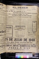 168. EAP726/1/1/51/168 Reference (shelfmark): EAP726/1/1/51/168 Title: El Deber [19 Jul 1940] Collection Area: Endangered Archives Programme Languages: Spanish Date Range: 19 Jul 1940 Extent: 8 Tiff images