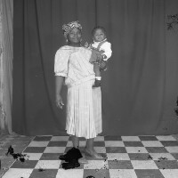 15. EAP054/1/105/77 Reference (shelfmark): EAP054/1/105/77 Title: Recreational photograph [c 1987] Scope & Content: Woman standing, in check dress, holding baby. Format of original: 59mm x 59mm plastic negative Collection Area: Endangered Archives Programme Languages: Not applicable Date Range: c 1987 Extent: 1 TIFF image