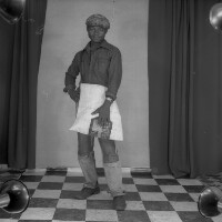 208. EAP054/1/170/540 Reference (shelfmark): EAP054/1/170/540 Title: Recreational photograph [c 1985] Scope & Content: Man standing holding sack Format of original: 59mm x 59mm plastic negative Collection Area: Endangered Archives Programme Languages: Not applicable Date Range: c 1985 Extent: 1 TIFF image