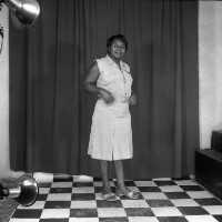 Young man from Batcham standing, in white short-sleeved shirt and dark trousers, left hand on hip and dark shoes. Format of original: 54mm x 59mm plastic negative