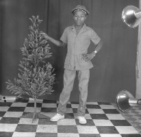 52. EAP054/1/170/376 Reference (shelfmark): EAP054/1/170/376 Title: Recreational photograph [c 1985] Scope & Content: Boy standing touching plastic tree Format of original: 58mm x 59mm plastic negative Collection Area: Endangered Archives Programme Languages: Not applicable Date Range: c 1985 Extent: 1 TIFF image