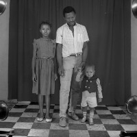 54. EAP054/1/170/391 Reference (shelfmark): EAP054/1/170/391 Title: Recreational photograph [c 1985] Scope & Content: Man standing between 2 children Format of original: 59mm x 59mm plastic negative Collection Area: Endangered Archives Programme Languages: Not applicable Date Range: c 1985 Extent: 1 TIFF image