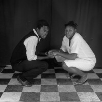 55. EAP054/1/170/397 Reference (shelfmark): EAP054/1/170/397 Title: Recreational photograph [c 1985] Scope & Content: Couple crouching holding hands Format of original: 59mm x 59mm plastic negative Collection Area: Endangered Archives Programme Languages: Not applicable Date Range: c 1985 Extent: 1 TIFF image