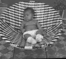 1. EAP054/1/87/14 Reference (shelfmark): EAP054/1/87/14 Title: Recreational photograph [c 1978] Scope & Content: Baby in a black and white armchair Format of original: 53mm x 59mm plastic negative Collection Area: Endangered Archives Programme Languages: Not applicable Date Range: c 1978 Extent: 1 TIFF image