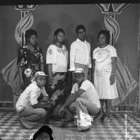 1. EAP054/1/99/3 Reference (shelfmark): EAP054/1/99/3 Title: Recreational photograph [c 1987] Scope & Content: Group of six people, four standing, 2 crouching and wearing caps. Format of original: 59mm x 59mm plastic negative Collection Area: Endangered Archives Programme Languages: Not applicable Date Range: c 1987 Extent: 1 TIFF image