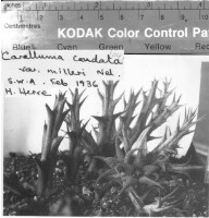 1. EAP923/1/1/1/245 Reference (shelfmark): EAP923/1/1/1/245 Title: Caralluma caudata var.milleri; in South West Africa Scope & Content: Genus: Caralluma, Taxonomic classification: Apocynaceae. Scribe(s): Jane Chilande. Collection Area: Endangered Archives Programme Languages: Not applicable Date Range: Jan 1936 Extent: 1 tiff image, 1.5 MB