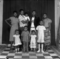 96. EAP054/1/103/144 Reference (shelfmark): EAP054/1/103/144 Title: Recreational photograph [c 1983-1984] Scope & Content: Couple standing with baby and 5 children. Format of original: 59mm x 59mm plastic negative Collection Area: Endangered Archives Programme Languages: Not applicable Date Range: 1983-1984 Extent: 1 TIFF image