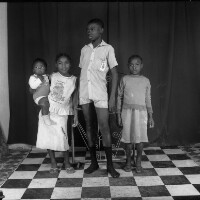 93. EAP054/1/103/139 Reference (shelfmark): EAP054/1/103/139 Title: Recreational photograph [c 1983-1984] Scope & Content: Group of 4 children standing Format of original: 59mm x 59mm plastic negative Collection Area: Endangered Archives Programme Languages: Not applicable Date Range: 1983-1984 Extent: 1 TIFF image
