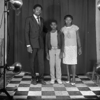 97. EAP054/1/169/292 Reference (shelfmark): EAP054/1/169/292 Title: Recreational photograph [c 1985] Scope & Content: Man standing with male child and female child Format of original: 59mm x 59mm plastic negative Collection Area: Endangered Archives Programme Languages: Not applicable Date Range: c 1985 Extent: 1 TIFF image