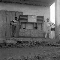 99. EAP054/1/169/295 Reference (shelfmark): EAP054/1/169/295 Title: Recreational photograph [c 1985] Scope & Content: 2 carpenters with a large piece of furniture Format of original: 59mm x 59mm plastic negative Collection Area: Endangered Archives Programme Languages: Not applicable Date Range: c 1985 Extent: 1 TIFF image