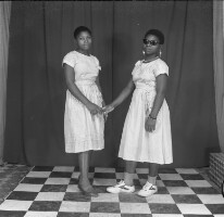94. EAP054/1/171/212 Reference (shelfmark): EAP054/1/171/212 Title: Recreational photograph [c 1986] Scope & Content: 2 young women standing shaking hands Format of original: 57mm x 59mm plastic negative Collection Area: Endangered Archives Programme Languages: Not applicable Date Range: c 1986 Extent: 1 TIFF image