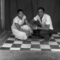 95. EAP054/1/171/213 Reference (shelfmark): EAP054/1/171/213 Title: Recreational photograph [c 1986] Scope & Content: Couple crouching. Format of original: 59mm x 59mm plastic negative Collection Area: Endangered Archives Programme Languages: Not applicable Date Range: c 1986 Extent: 1 TIFF image