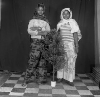 96. EAP054/1/171/223 Reference (shelfmark): EAP054/1/171/223 Title: Recreational photograph [c 1986] Scope & Content: 2 women standing, behind plastic tree Format of original: 58mm x 59mm plastic negative Collection Area: Endangered Archives Programme Languages: Not applicable Date Range: c 1986 Extent: 1 TIFF image