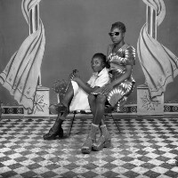 119. EAP054/1/129/401 Reference (shelfmark): EAP054/1/129/401 Title: Recreational photograph [c 1973] Scope & Content: 2 young women sitting on an armchair, one in flowered dress and sunglasses. Format of original: 59mm x 59mm plastic negative Collection Area: Endangered Archives Programme Languages: Not applicable Date Range: c 1973 Extent: 1 TIFF image