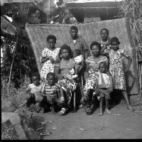 114. EAP054/1/159/134 Reference (shelfmark): EAP054/1/159/134 Title: Recreational photograph [c 1980] Scope & Content: Group of 10 people, 2 women sitting and children Format of original: 59mm x 59mm plastic negative Collection Area: Endangered Archives Programme Languages: Not applicable Date Range: c 1980 Extent: 1 TIFF image