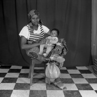 117. EAP054/1/171/308 Reference (shelfmark): EAP054/1/171/308 Title: Recreational photograph [c 1986] Scope & Content: Woman sitting, with crossed legs, holding a baby Format of original: 59mm x 59mm plastic negative Collection Area: Endangered Archives Programme Languages: Not applicable Date Range: c 1986 Extent: 1 TIFF image