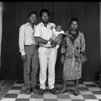 120. EAP054/1/171/315 Reference (shelfmark): EAP054/1/171/315 Title: Recreational photograph [c 1986] Scope & Content: Couple standing, man holding a baby, with another man standing Format of original: 59mm x 59mm plastic negative Collection Area: Endangered Archives Programme Languages: Not applicable Date Range: c 1986 Extent: 1 TIFF image