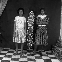 128. EAP054/1/22/295 Reference (shelfmark): EAP054/1/22/295 Title: Recreational photograph [c 1990] Scope & Content: 2 women standing by tree Format of original: 59mm x 59mm plastic negative Collection Area: Endangered Archives Programme Languages: Not applicable Date Range: c 1990 Extent: 1 TIFF image