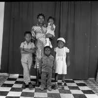 126. EAP054/1/103/272 Reference (shelfmark): EAP054/1/103/272 Title: Recreational photograph [c 1983-1984] Scope & Content: Young woman standing holding a baby, 3 children standing. Format of original: 59mm x 59mm plastic negative Collection Area: Endangered Archives Programme Languages: Not applicable Date Range: 1983-1984 Extent: 1 TIFF image