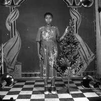126. EAP054/1/137/356 Reference (shelfmark): EAP054/1/137/356 Title: Recreational photograph [c 1981] Scope & Content: Girl standing touching plastic tree on her left. Format of original: 59mm x 59mm plastic negative Collection Area: Endangered Archives Programme Languages: Not applicable Date Range: c 1981 Extent: 1 TIFF image