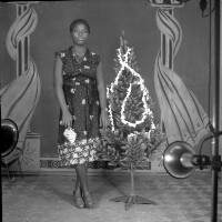 128. EAP054/1/158/208 Reference (shelfmark): EAP054/1/158/208 Title: Recreational photograph [c 1980] Scope & Content: Woman standing by tree Format of original: 59mm x 59mm plastic negative Collection Area: Endangered Archives Programme Languages: Not applicable Date Range: c 1980 Extent: 1 TIFF image