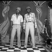 130. EAP054/1/158/220 Reference (shelfmark): EAP054/1/158/220 Title: Recreational photograph [c 1980] Scope & Content: 2 men standing Format of original: 59mm x 59mm plastic negative Collection Area: Endangered Archives Programme Languages: Not applicable Date Range: c 1980 Extent: 1 TIFF image