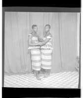 127. EAP449/2/14/176 Reference (shelfmark): EAP449/2/14/176 Title: Two women wearing dresses and pagnes holding each others' hands in the studio. Collection Area: Endangered Archives Programme Languages: Not applicable Date Range: 2nd half od the 20th century Extent: 1 TIFF image