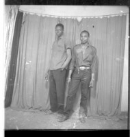129. EAP449/2/14/320 Reference (shelfmark): EAP449/2/14/320 Title: Two young men wearing shirts and black pants standing face-forward in the studio. Collection Area: Endangered Archives Programme Languages: Not applicable Date Range: 2nd half od the 20th century Extent: 1 TIFF image