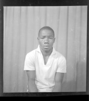 121. EAP449/2/14/423 Reference (shelfmark): EAP449/2/14/423 Title: A young man wearing a white t-shirt sitting face-forward in the studio. Collection Area: Endangered Archives Programme Languages: Not applicable Date Range: 2nd half od the 20th century Extent: 1 TIFF image