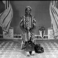133. EAP054/1/132/609 Reference (shelfmark): EAP054/1/132/609 Title: Recreational photograph [c 1980] Scope & Content: Young woman from Babete, standing, in white dress and white tennis shoes. Format of original: 59mm x 59mm plastic negative Collection Area: Endangered Archives Programme Languages: Not applicable Date Range: c 1980 Extent: 1 TIFF image