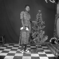 134. EAP054/1/163/220 Reference (shelfmark): EAP054/1/163/220 Title: Recreational photograph [c 1983] Scope & Content: Woman standing touching a plastic tree Format of original: 59mm x 59mm plastic negative Collection Area: Endangered Archives Programme Languages: Not applicable Date Range: c 1983 Extent: 1 TIFF image