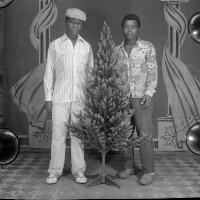 Group of six people: man in traditional dress, a woman and four children, the children standing, man and woman sitting. Format of original: 59mm x 59mm plastic negative