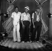143. EAP054/1/132/117 Reference (shelfmark): EAP054/1/132/117 Title: Recreational photograph [c 1980] Scope & Content: 3 young men standing. Format of original: 59mm x 59mm plastic negative Collection Area: Endangered Archives Programme Languages: Not applicable Date Range: c 1980 Extent: 1 TIFF image