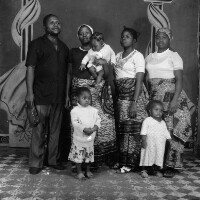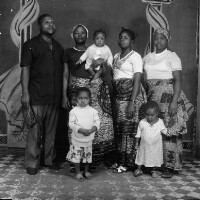 144. EAP054/1/132/124 Reference (shelfmark): EAP054/1/132/124 Title: Recreational photograph [c 1980] Scope & Content: Group of seven people, all standing. Man and 3 women one carrying baby and 2 children Format of original: 59mm x 59mm plastic negative Collection Area: Endangered Archives Programme Languages: Not applicable Date Range: c 1980 Extent: 1 TIFF image
