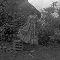 148. EAP054/1/132/148 Reference (shelfmark): EAP054/1/132/148 Title: Recreational photograph [c 1980] Scope & Content: Woman standing, one foot on a stool Format of original: 59mm x 59mm plastic negative Collection Area: Endangered Archives Programme Languages: Not applicable Date Range: c 1980 Extent: 1 TIFF image