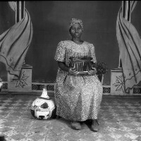 150. EAP054/1/132/155 Reference (shelfmark): EAP054/1/132/155 Title: Recreational photograph [c 1980] Scope & Content: Woman sitting holding handbag in her lap and by decorated gourd Format of original: 59mm x 59mm plastic negative Collection Area: Endangered Archives Programme Languages: Not applicable Date Range: c 1980 Extent: 1 TIFF image