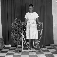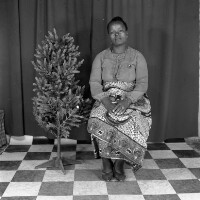 152. EAP054/1/46/81 Reference (shelfmark): EAP054/1/46/81 Title: Recreational photograph [c 1984 - 1985] Scope & Content: Woman in "pagne" skirt, sitting on stool, next to a plastic tree. Format of original: 59mm x 59mm plastic negative Collection Area: Endangered Archives Programme Languages: Not applicable Date Range: 1984-1985 Extent: 1 TIFF image