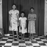 156. EAP054/1/46/118 Reference (shelfmark): EAP054/1/46/118 Title: Recreational photograph [c 1984 - 1985] Scope & Content: Three girls standing, the one on the left with arms crossed. Format of original: 59mm x 59mm plastic negative Collection Area: Endangered Archives Programme Languages: Not applicable Date Range: 1984-1985 Extent: 1 TIFF image
