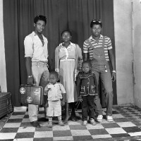 157. EAP054/1/46/123 Reference (shelfmark): EAP054/1/46/123 Title: Recreational photograph [c 1984 - 1985] Scope & Content: Five people standing: 2 men, a woman and 2 children, one man holding dark briefcase. Format of original: 59mm x 59mm plastic negative Collection Area: Endangered Archives Programme Languages: Not applicable Date Range: 1984-1985 Extent: 1 TIFF image
