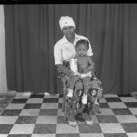 160. EAP054/1/46/130 Reference (shelfmark): EAP054/1/46/130 Title: Recreational photograph [c 1984 - 1985] Scope & Content: Woman sitting on a stool and holding little girl, torso nude, on her lap. Format of original: 59mm x 59mm plastic negative Collection Area: Endangered Archives Programme Languages: Not applicable Date Range: 1984-1985 Extent: 1 TIFF image