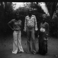159. EAP054/1/132/236 Reference (shelfmark): EAP054/1/132/236 Title: Recreational photograph [c 1980] Scope & Content: Man between 2 women. All standing. In front of trees Format of original: 59mm x 59mm plastic negative Collection Area: Endangered Archives Programme Languages: Not applicable Date Range: c 1980 Extent: 1 TIFF image