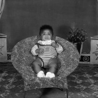 160. EAP054/1/132/240 Reference (shelfmark): EAP054/1/132/240 Title: Recreational photograph [c 1980] Scope & Content: Baby in an armchair. Format of original: 59mm x 59mm plastic negative Collection Area: Endangered Archives Programme Languages: Not applicable Date Range: c 1980 Extent: 1 TIFF image