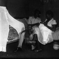 156. EAP054/1/158/443 Reference (shelfmark): EAP054/1/158/443 Title: Recreational photograph [c 1980] Scope & Content: Woman with baby sitting on hopistal bed Format of original: 59mm x 59mm plastic negative Collection Area: Endangered Archives Programme Languages: Not applicable Date Range: c 1980 Extent: 1 TIFF image