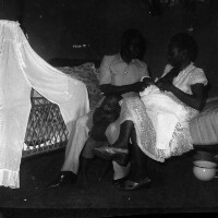 155. EAP054/1/158/442 Reference (shelfmark): EAP054/1/158/442 Title: Recreational photograph [c 1980] Scope & Content: Woman with baby sitting on hopistal bed Format of original: 59mm x 59mm plastic negative Collection Area: Endangered Archives Programme Languages: Not applicable Date Range: c 1980 Extent: 1 TIFF image