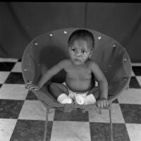 153. EAP054/1/171/191 Reference (shelfmark): EAP054/1/171/191 Title: Recreational photograph [c 1986] Scope & Content: Baby in an armchair Format of original: 59mm x 59mm plastic negative Collection Area: Endangered Archives Programme Languages: Not applicable Date Range: c 1986 Extent: 1 TIFF image