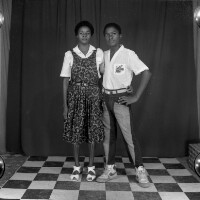 155. EAP054/1/171/200 Reference (shelfmark): EAP054/1/171/200 Title: Recreational photograph [c 1986] Scope & Content: Young couple standing, man with left hand on hip Format of original: 59mm x 59mm plastic negative Collection Area: Endangered Archives Programme Languages: Not applicable Date Range: c 1986 Extent: 1 TIFF image