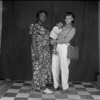 157. EAP054/1/171/211 Reference (shelfmark): EAP054/1/171/211 Title: Recreational photograph [c 1986] Scope & Content: 2 women standing, one holding a baby and with handbag over her shoulder Format of original: 59mm x 59mm plastic negative Collection Area: Endangered Archives Programme Languages: Not applicable Date Range: c 1986 Extent: 1 TIFF image